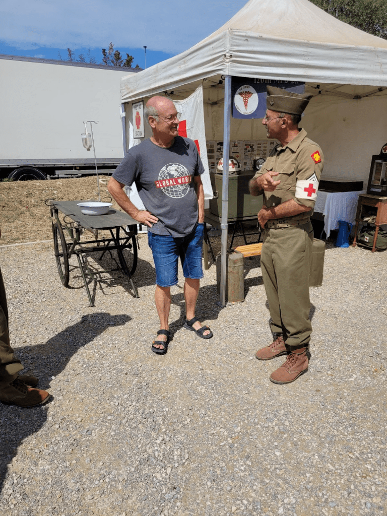 Régulièrement conviée lors de manifestations en France, nous avons pu parcourir une partie des routes utilisées par les militaires américains. A Plusieurs reprises nous avons pu rencontré des vétérans de la 45th infantry Division et ainsi que des Familles de Gi’s.